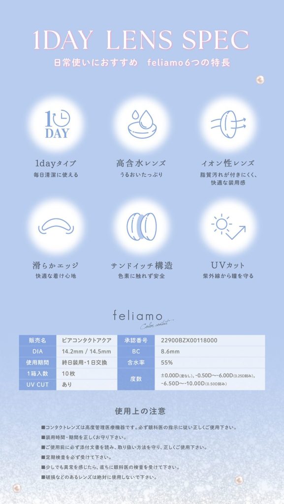 | タイプ | 1日使い捨てコンタクトレンズ(ワンデー) |