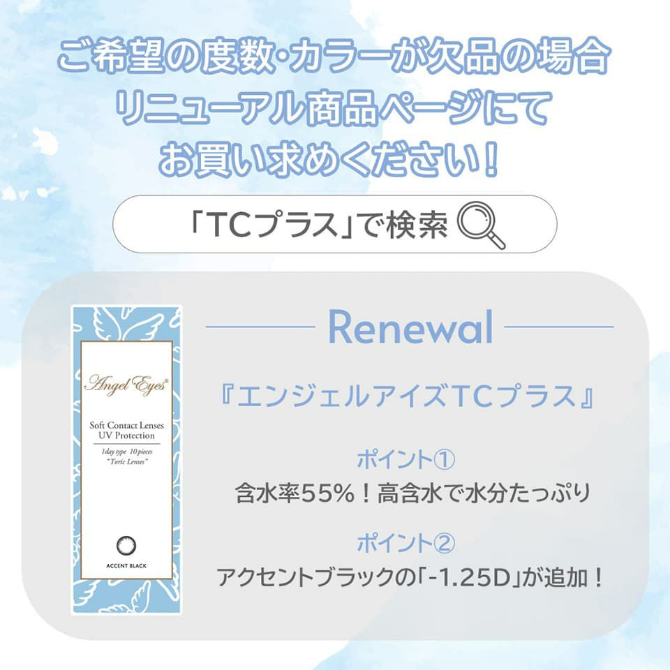 「エンジェルアイズワンデートーリックプラス」の含水率が42.5%→【55%】にUPし、アクセントブラック(黒)に【乱視軸:-1.25】が追加されました!