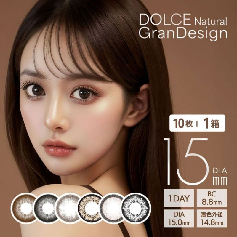 ドルチェナチュラル グランデザイン (DOLCE Natural GranDesign) 10枚入 国内承認最大級“DIA15.0mm”サイズのワンデーカラコン『ドルチェナチュラル グランデザイン (DOLCE Natural GranDesign)』が新登場! 低含水率、非イオン性、サンドイッチ構造の高スペックレンズです!