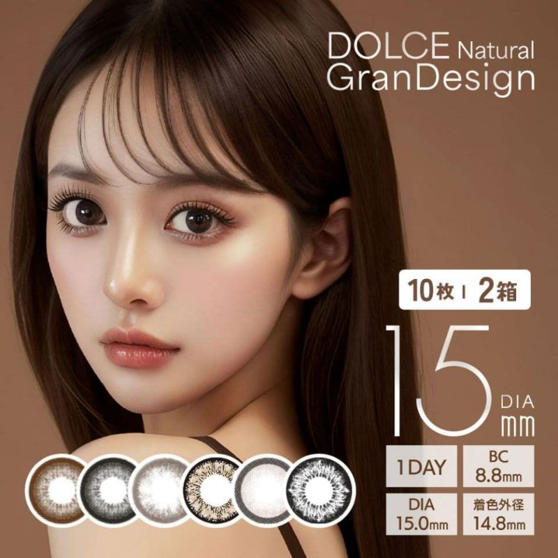 ドルチェナチュラル グランデザイン (DOLCE Natural GranDesign) 10枚入 ×2箱セット 国内承認最大級“DIA15.0mm”サイズのワンデーカラコン『ドルチェナチュラル グランデザイン (DOLCE Natural GranDesign)』が新登場! 低含水率、非イオン性、サンドイッチ構造の高スペックレンズです!