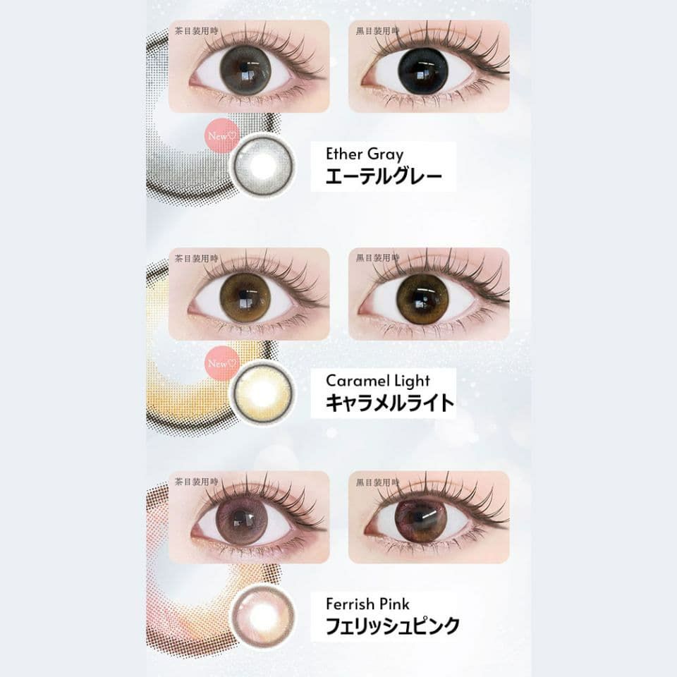 大人気女性3人組YouTuber「ヘラヘラ三銃士」まりなさんプロデュースのワンデーカラコンFerenne(フェレーヌ)から、とろける水光レンズ「エーテルグレー」&「キャラメルライト」が新登場!
