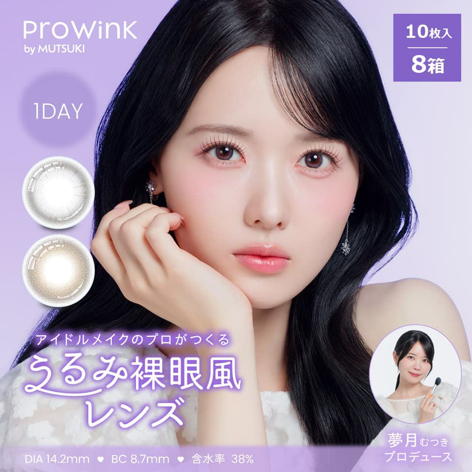 プロウィンク (Prowink) 人気モデルやアイドルのヘアメイクを手がけるメイクアップアーティスト夢月さんプロデュースの1日交換タイプのカラーコンタクトレンズ。