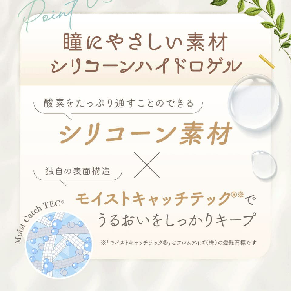 さらにレンズ素材にシリコーンハイドロゲル素材を採用し、【日本初】瞳に優しい&可愛いが続く1日交換タイプのカラーコンタクトレンズになりました!