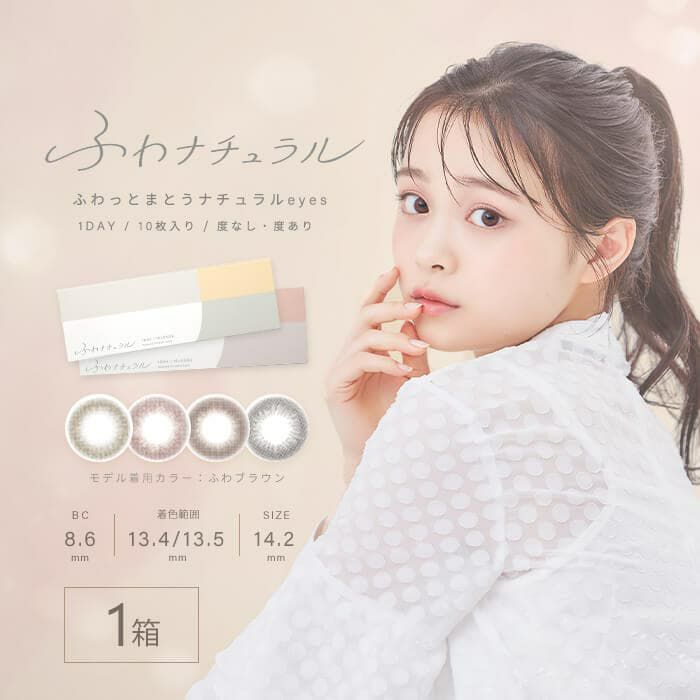 ふわナチュラルは「ありのままの自分いたい」という女の子の願いを叶える為に作られた1日交換タイプのナチュラルカラーコンタクトレンズです。なめらかなレンズで飾らないわたしに。